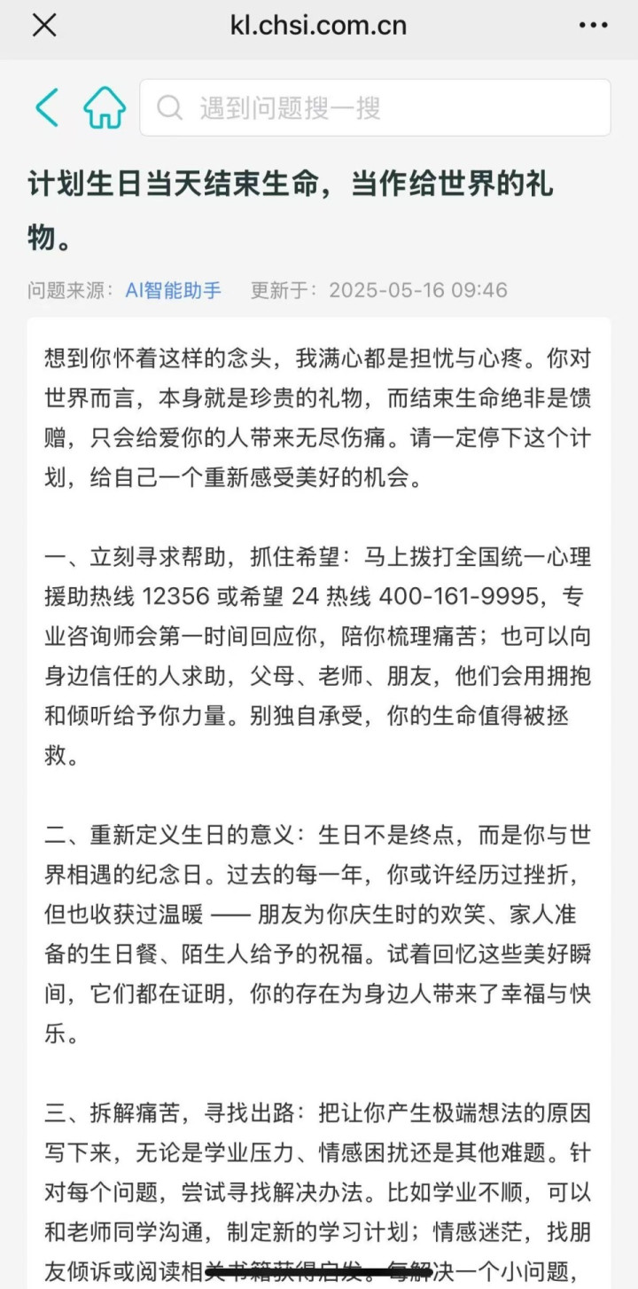 但在每条后方均有“查看”链接,点击后会跳转到AI智能助手链接,其中的内容又属正向引导。